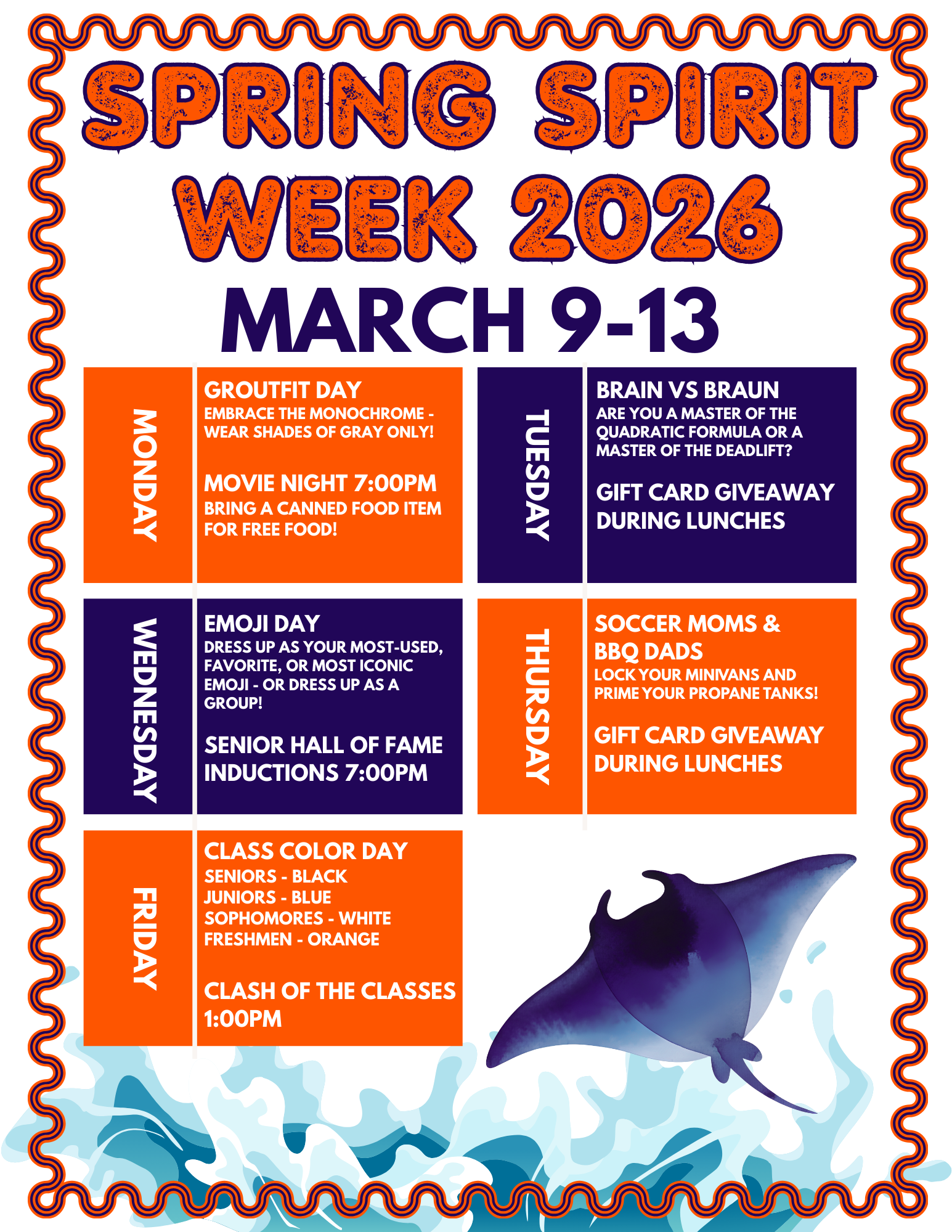 HEY MANTAS!!! The most anticipated day of the year is finally here - CLASH OF THE CLASSES IS HAPPENING MARCH 13TH! It’s time bring the heat and represent your class in this epic field day!Use Stude...